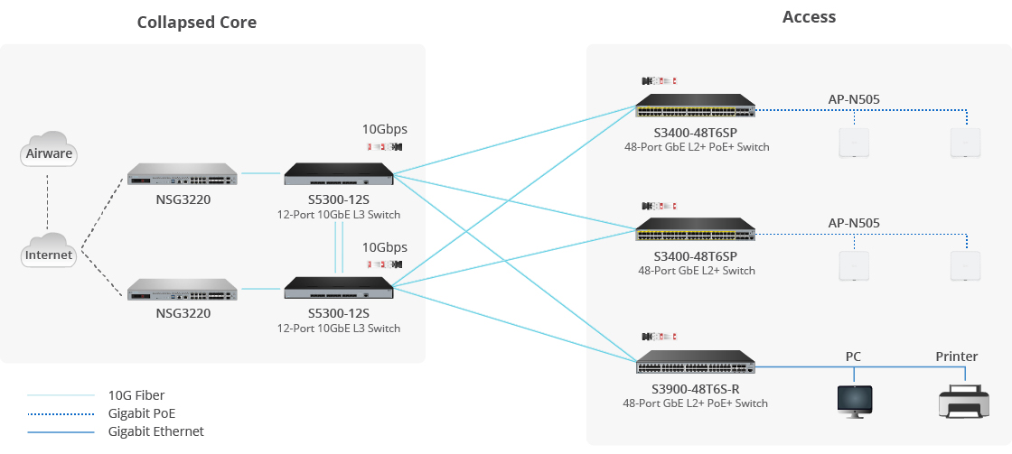 This access switch delivers a compact, cost-effective solution for carrier's IP MAN and enterprise networks. Based on the high-performance hardware and FSOS platform, it supports functions such as ACL, QinQ and QoS. Its simple management mode and flexible installation can meet the requirement of any complicated scenario.
